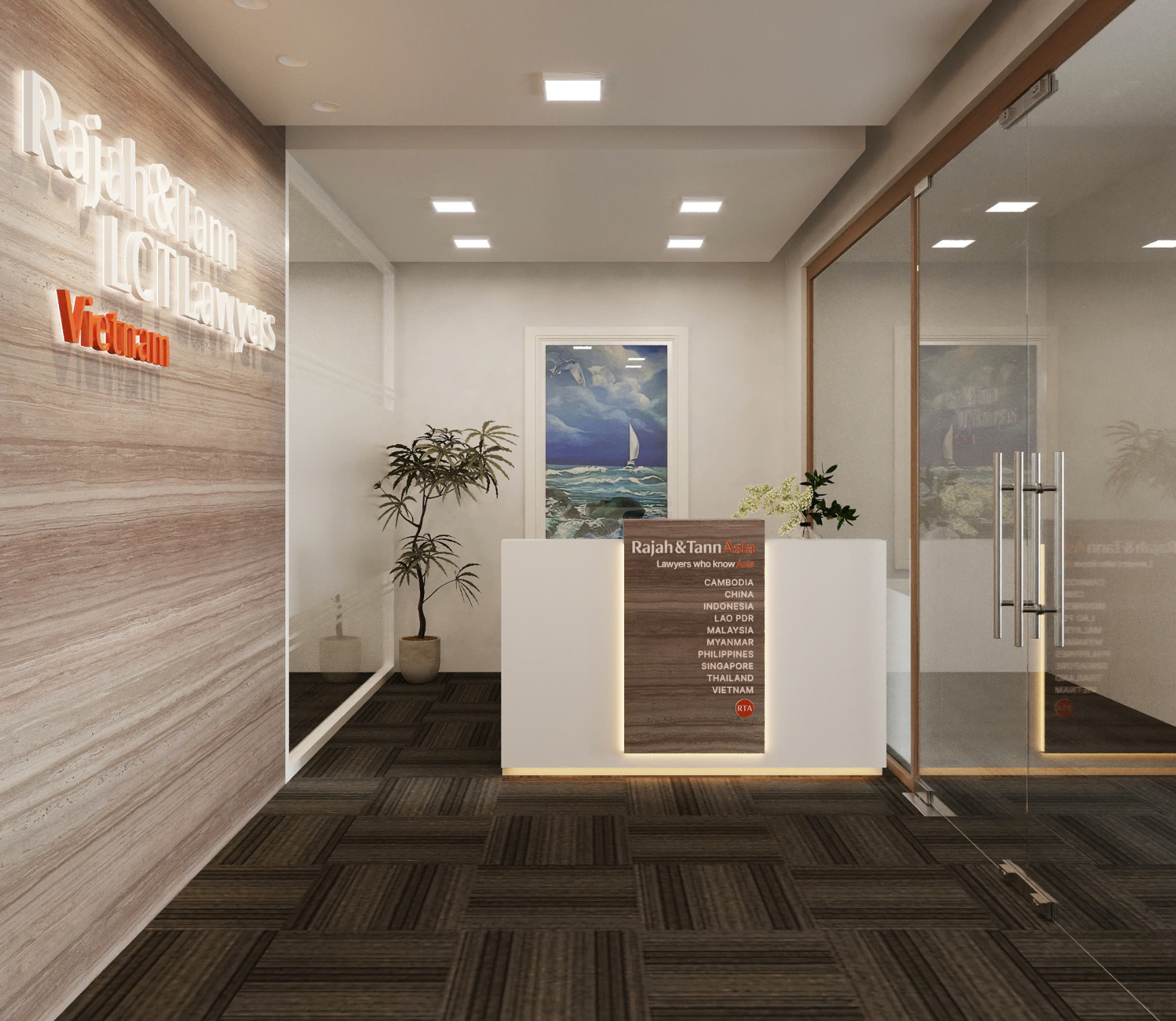 Dự án Rajah & Tann LCT Lawyers Vietnam Office được đội ngũ ATMT thiết kế và thi công với định hướng tạo nên không gian làm việc trang trọng, hiện đại và phản ánh bản sắc chuyên nghiệp của ngành luật quốc tế.