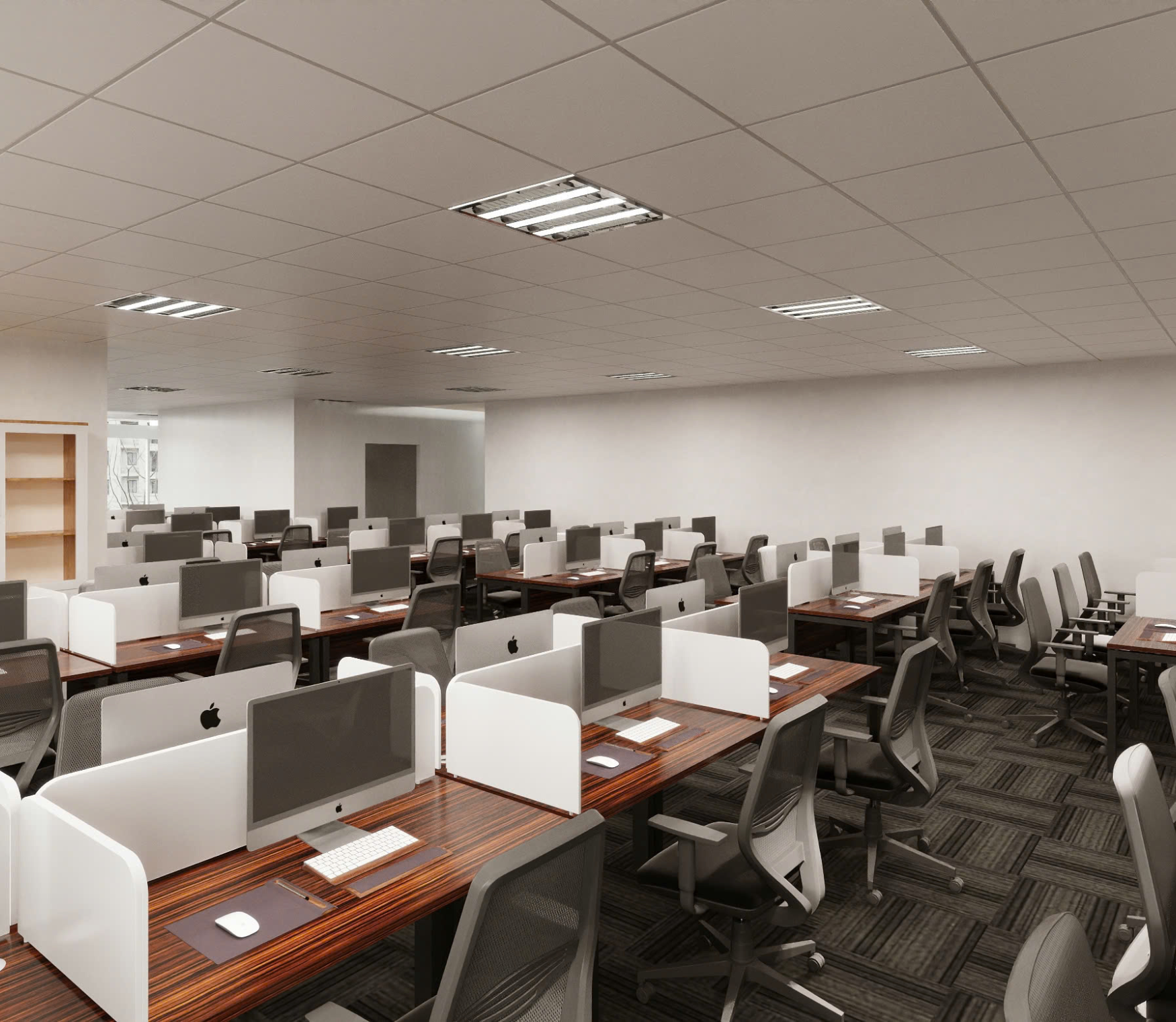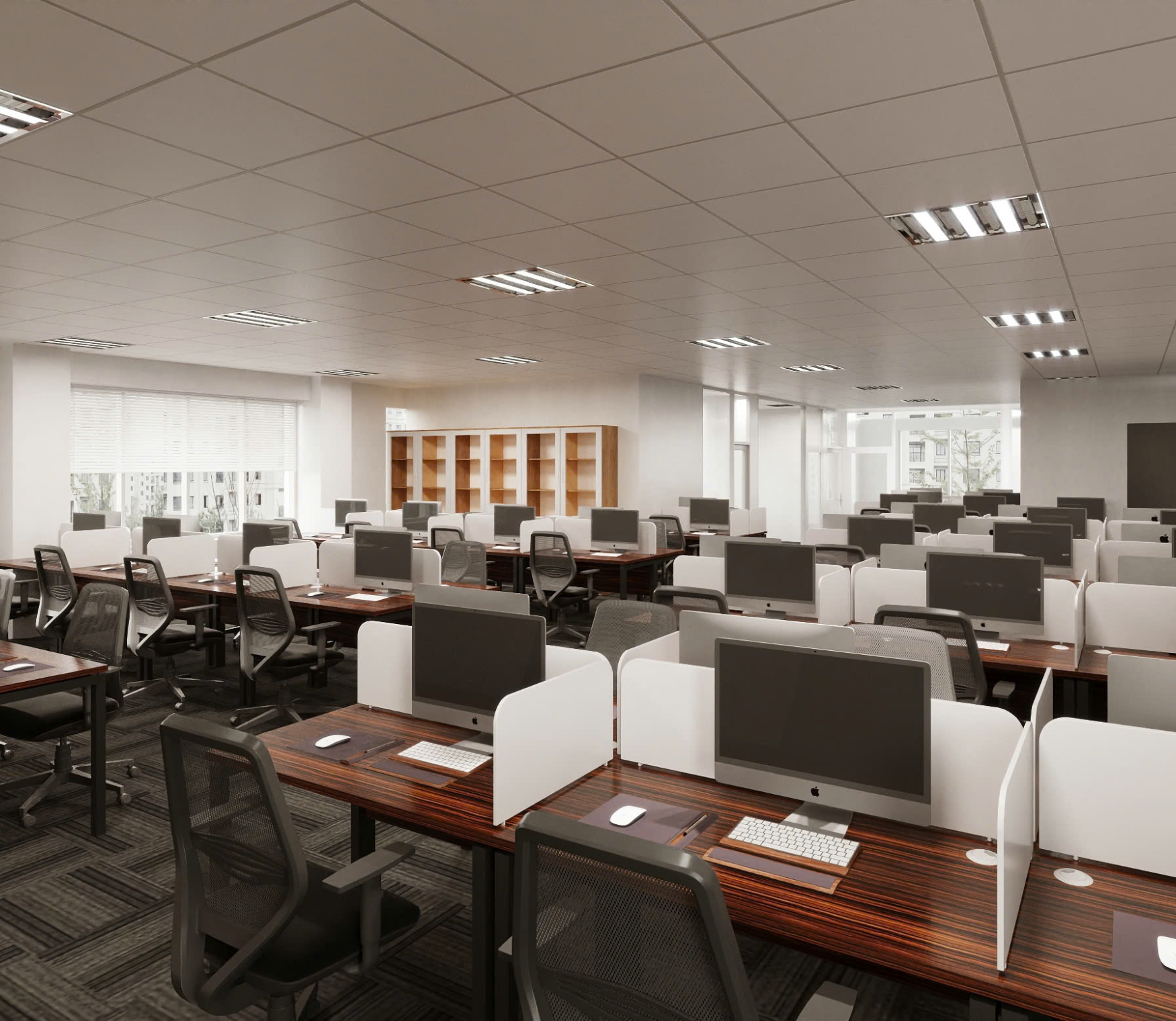 Không gian làm việc mở giúp tăng hiệu quả vận hành và tính kết nối giữa các bộ phận, trong khi khu họp chính và phòng lãnh đạo được xử lý bằng kính trong & ánh sáng tự nhiên, đảm bảo sự riêng tư nhưng vẫn thông thoáng.